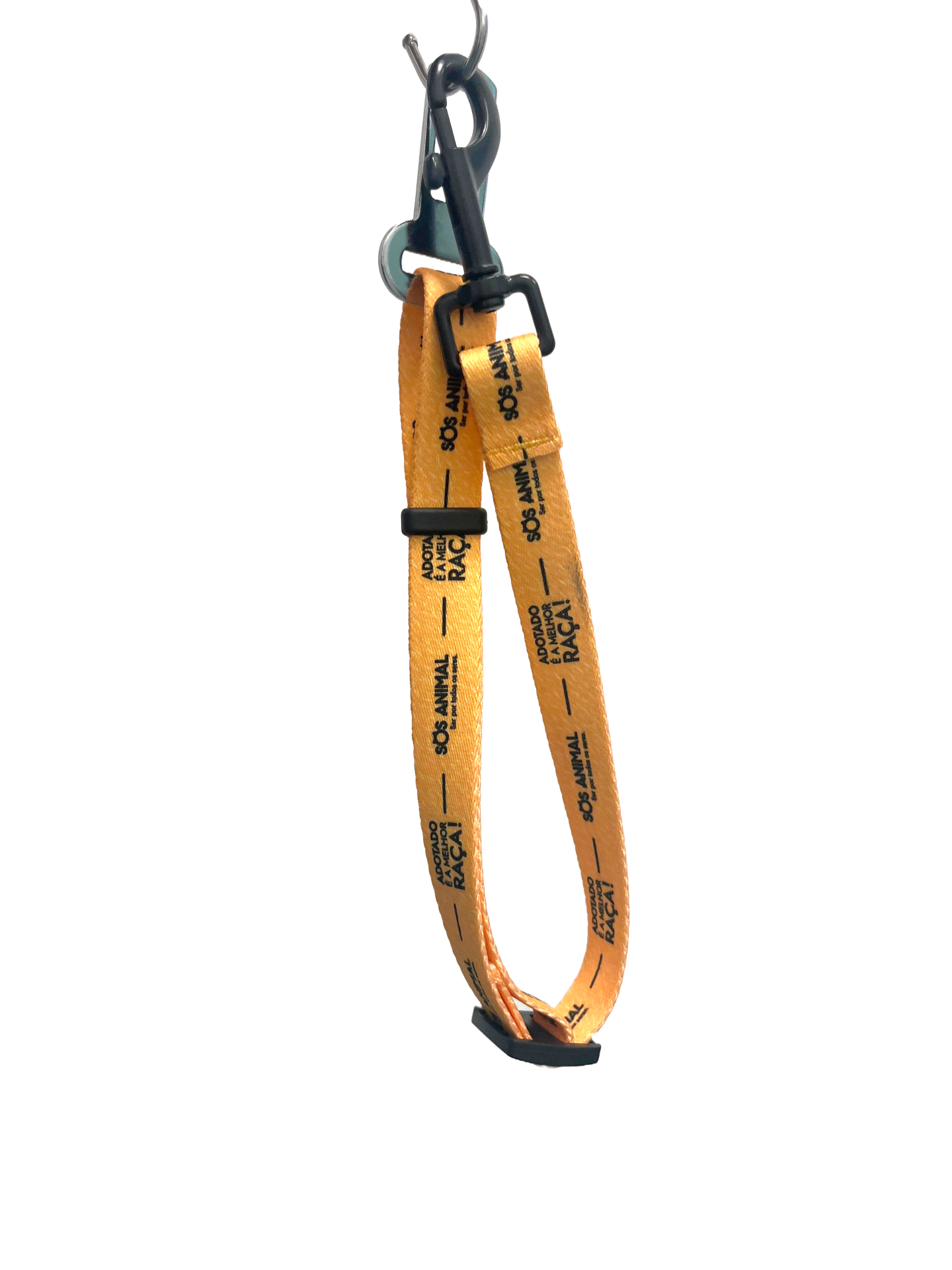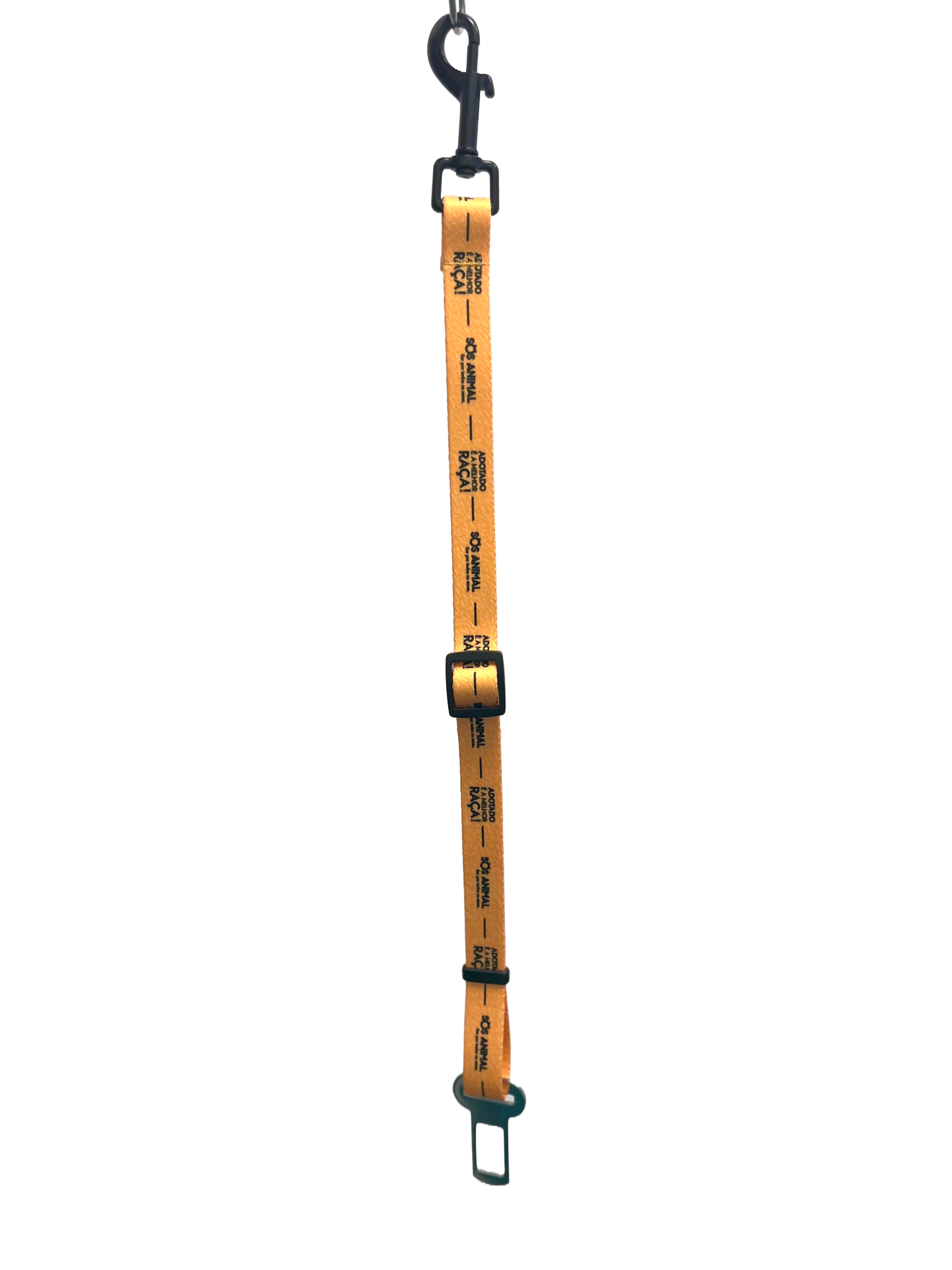 Cinta amarela ajustável com gancho preto e clip para cinto de segurança